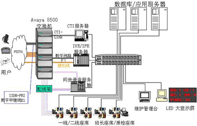 交換機(jī)/排隊機(jī):選用AVAYA的S8500交換機(jī)作為前端排隊設(shè)備。