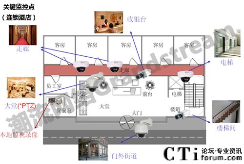 采用潮流網(wǎng)絡(luò)提供的網(wǎng)絡(luò)監(jiān)控平臺來加強管理和提高各個門市的服務(wù)質(zhì)量。由于是連鎖酒店,所以高層主管無法時時刻刻在各個酒店內(nèi)管理,讓高層對于酒店內(nèi)的營運管理十分頭痛,所以當(dāng)主管在裝設(shè)監(jiān)控系統(tǒng)時要求希望達到透過Internet的集中監(jiān)控、分散管理,監(jiān)控中心的操作平臺方面希望能使用人性化的界面簡單不繁瑣。潮流網(wǎng)絡(luò)的監(jiān)控系統(tǒng)可展開樹狀目錄進行不同地域的階層式管理,高層主管可透過網(wǎng)絡(luò)進行“跨地域、跨網(wǎng)域”的實時監(jiān)看,隨時可掌控酒店內(nèi)的營運狀況,無需再親自到酒店。