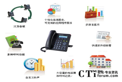 - 用戶自定義鈴聲,SRTP,SIP over TLS,支持多種語言和XML,支持個(gè)性化的信息服務(wù)、可定制的應(yīng)用程序服務(wù)支持和多語言顯示(例如:本地天氣等)。