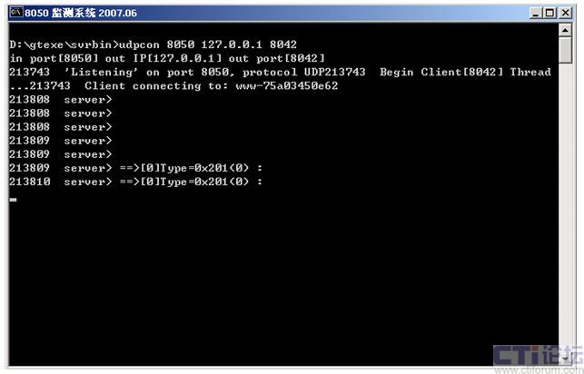 監(jiān)控后臺(tái)運(yùn)行dispsvr.bat(d:\gtexe\bin>udpcon 8050 127.0.0.1 8042)