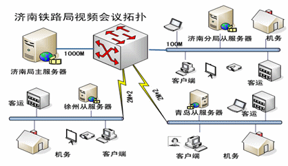 濟(jì)南鐵路局規(guī)模龐大,機(jī)構(gòu)復(fù)雜,由于鐵路的特殊性,一個(gè)部門或機(jī)構(gòu)往往分布在鐵路沿線的數(shù)十個(gè)站段。因此,溝通和會(huì)議的模式也是多種多樣的,會(huì)議使用單位較多而且頻繁,這就對網(wǎng)絡(luò)視頻會(huì)議系統(tǒng)提出了很高的要求,即能滿足當(dāng)?shù)氐臅?huì)議,又要能夠滿足跨區(qū)域的會(huì)議。