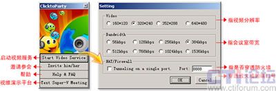 Video Service按鈕,對方就可以在聊天窗口中收到邀請信息,點(diǎn)擊“接受”按鈕后雙方自動啟動并進(jìn)入Clicktoparty軟件的主界面。您還可以以同樣的操作步驟,陸續(xù)邀請其他好友或聯(lián)系人加入,之后就可以享受Clicktoparty帶給您的強(qiáng)大功能和美好體驗,包括專業(yè)級的音視頻實時溝通、多人文字交流及私聊、桌面共享及遠(yuǎn)程協(xié)助、高速的文件傳輸、各種文檔的在線演示和討論等。