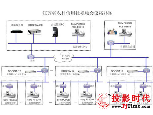本次設(shè)計(jì)方案中,上海索高通過對江蘇農(nóng)信社的全省分布和各地實(shí)際需求,提供72套Sony PCS-G50視頻會議終端,IP網(wǎng)絡(luò)支持最大4Mbps的視頻傳輸速率,為用戶提供4CIF的高質(zhì)量視頻效果,配合H.264的強(qiáng)大功能一起獲得更高的媒體處理能力。通過Radvision