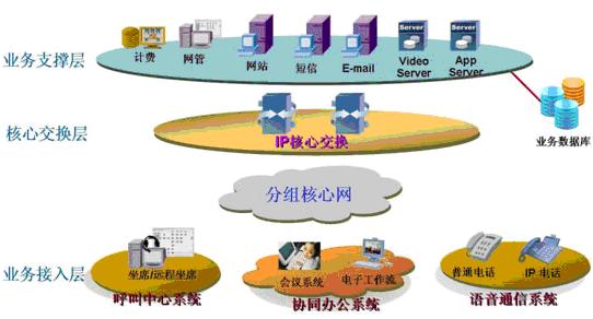 業(yè)務支撐層:計費、網(wǎng)管、多媒體視頻、應用服務器等各種功能服務器。可與用戶的業(yè)務數(shù)據(jù)庫對接,為整個業(yè)務提供有力的支撐平臺。確保有效快速的處理呼叫流程、提高工作效率,評估呼叫中心的表現(xiàn)。
