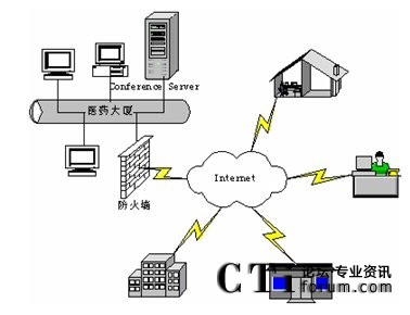 視頻會議服務(wù)器設(shè)置在上?偛,通過電信的6M帶寬接入互聯(lián)網(wǎng),并配備有廣域網(wǎng)靜態(tài)IP地址。下屬生產(chǎn)基地和分支機(jī)構(gòu)通過電信ADSL接入和光纖接入等方式接入互聯(lián)網(wǎng)。這些點能夠?qū)崿F(xiàn)網(wǎng)絡(luò)視頻會議通訊,進(jìn)行音頻、視頻和數(shù)據(jù)的多方溝通。