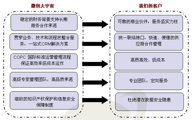 依托于兩大成功企業(yè)背景平臺(tái),微創(chuàng)大宇宙從組建伊始即擁有微創(chuàng)軟件的專業(yè)技術(shù)支持能力、強(qiáng)大技術(shù)開發(fā)實(shí)力加之transcosmos的成熟流程運(yùn)營體系、豐富行業(yè)實(shí)踐經(jīng)驗(yàn)及雙方堅(jiān)實(shí)行業(yè)背景,是微創(chuàng)大宇宙一躍成為目前中國呼叫中心外包領(lǐng)域成長最快的企業(yè)。