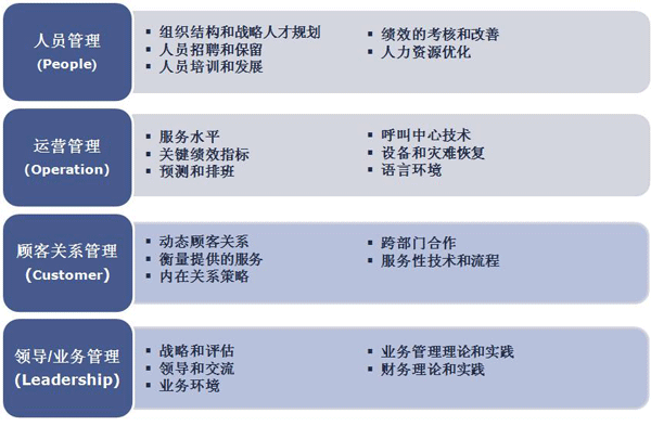 呼叫中心中高層管理人員認(rèn)證是為呼叫中心行業(yè)建立自己的“黃埔軍!。通過一系列的培訓(xùn),包含人員管理,運(yùn)營管理,顧客關(guān)系管理和領(lǐng)導(dǎo)/業(yè)務(wù)管理,來為呼叫中心行業(yè)培養(yǎng)合適的中高層管理人員。