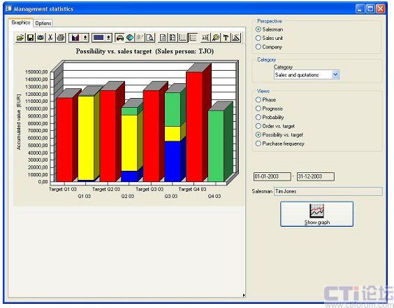 使企業(yè)用戶可以獲得與銷售相關(guān)的主要信息的圖形化視圖。通過該方案能夠簡化機(jī)會(huì)和管道管理,由此可獲得銷售和營銷成果的即時(shí)概況,同時(shí)可以提供銷售和營銷經(jīng)理與其團(tuán)隊(duì)之間的有效協(xié)作。企業(yè)可通過系統(tǒng)建立和監(jiān)視銷售單位中每個(gè)成員的銷售目標(biāo),并可以快速方便地瀏覽或修改該目標(biāo),能夠快捷地獲得季度或年度目標(biāo)的即時(shí)概況,并且使用直觀的圖形化圖表顯示這些關(guān)鍵數(shù)據(jù)和數(shù)據(jù)趨勢。管理層還可以對銷售歷史的任意時(shí)間段中的銷售人員相關(guān)的收入和支出、盈利和虧損數(shù)據(jù)進(jìn)行分析和比較。