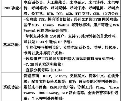 中小企業(yè)語(yǔ)音通信系統(tǒng)的功能及參數(shù)一覽表