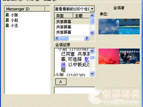 清揚(yáng)即時(shí)通信與視頻會(huì)議軟件: 通過(guò)視頻會(huì)議,只要坐在計(jì)算機(jī)前,就可以與本地或者外地,固定或者移動(dòng),局域網(wǎng)或者廣域網(wǎng)的同事們進(jìn)行跨地域空間的卻又面對(duì)面的視頻會(huì)議。通過(guò)屏幕共享,坐電腦前能夠觀看遠(yuǎn)程的電腦操作,也可以操作電腦讓遠(yuǎn)程電腦觀看;通過(guò)共享播放,把VCD教育片播放給遠(yuǎn)程電腦觀看,也可以收看遠(yuǎn)程的播放;通過(guò)即時(shí)通信,把通知瞬間發(fā)布到所有同事,也可以把文件瞬間傳送給大家,還能夠接受來(lái)自同事的通知信息和文件;通過(guò)遠(yuǎn)程協(xié)助,可以求助同事遠(yuǎn)程操作自己的電腦等等,……,有了清揚(yáng)即時(shí)通信與視頻會(huì)議,遠(yuǎn)在天涯的辦公室已近在眼前,移動(dòng)辦公和異地辦公也不再有隔閡。