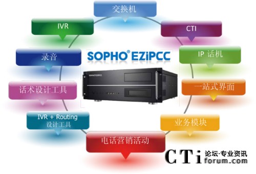 SOPHO EZiPCC(簡稱EZiPCC) 基于IP為核心技術(shù)的平臺,以All-In-One 的設(shè)計理念,提供一體化呼叫 中心解決方案,其中包含了呼叫中心所需要的基本話務(wù)系統(tǒng),例如:PBX,IVR,Recording,CTI