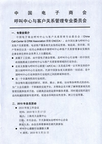 - 隸屬于工信部,由中國(guó)電子商會(huì)管理。是呼叫中心行業(yè)唯一經(jīng)中國(guó)民政部批準(zhǔn)成立的呼叫中心與客戶(hù)關(guān)系管理領(lǐng)域的行業(yè)協(xié)會(huì)。
