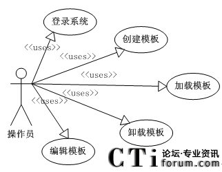 報(bào)表設(shè)計(jì)工具,主要功能是用來在可視化界面中察看和修改記錄統(tǒng)計(jì),負(fù)責(zé)處理報(bào)表的設(shè)計(jì)工作。它應(yīng)該具有全面的報(bào)表設(shè)計(jì)功能和友好的用戶界面,能夠被普遍的數(shù)據(jù)處理和編輯時(shí)所采用。該報(bào)表設(shè)計(jì)工具的操作員利用該工具可以進(jìn)行系統(tǒng)登錄,創(chuàng)建模板,編輯模板,加載模板,卸載模板等,用例圖[30]