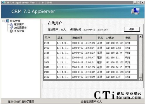 從下圖的列表可以看到實(shí)時(shí)的用戶連接數(shù),每個(gè)客戶端的CPU序列號(hào),硬盤序列,和唯一的登陸序列。并且可以選擇指定的用戶,對(duì)用戶做強(qiáng)迫下線,發(fā)送消息,截取用戶屏幕等操作。