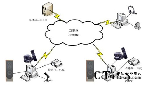 系統(tǒng)選用北京億方連線通訊技術(shù)有限公司具有國(guó)際先進(jìn)水平的全新第四代網(wǎng)絡(luò)視頻協(xié)作會(huì)議中心Q.Meeting為核心進(jìn)行構(gòu)建,該系統(tǒng)由會(huì)議服務(wù)器Q.Meeting Server和基于IE 瀏覽器的客戶端組成。Q.Meeting Server運(yùn)行于一臺(tái)服務(wù)器上,構(gòu)成網(wǎng)絡(luò)會(huì)議中心,提供會(huì)議控制、視頻服務(wù)、語(yǔ)音服務(wù)、共享服務(wù)、WEB服務(wù)和會(huì)議用戶管理等功能。所有參加會(huì)議的人員只需通過IE瀏覽器訪問會(huì)議中心網(wǎng)站就可以參加會(huì)議,通過訪問會(huì)議頁(yè)面和嵌于其中的客戶端插件Q.Meeting Control實(shí)現(xiàn)音頻和數(shù)據(jù)共享等交流。