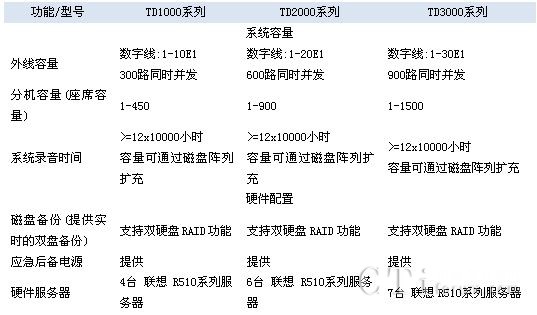 TD3000系列產(chǎn)品,設(shè)計(jì)容量為30E1外線(900路并發(fā)),1500座席。TD3000系列在2000系列的技術(shù)上,增加1臺(tái)應(yīng)用服務(wù)器,以響應(yīng)更多的座席業(yè)務(wù)處理的請(qǐng)求。