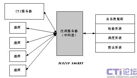數(shù)據(jù)接口采用三層C/S結構,通過構建功能強大的應用服務器,把呼叫中心的數(shù)據(jù)流與燃氣公司客戶系統(tǒng)、營業(yè)系統(tǒng)、搶修系統(tǒng)和燃氣調(diào)度系統(tǒng)結合起來,充分利用了已有系統(tǒng)標準的數(shù)據(jù)接口,實現(xiàn)對后臺數(shù)據(jù)庫的訪問。如圖2