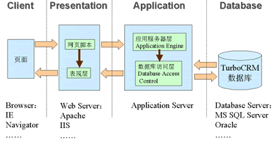 為了滿足移動辦公和分布式管理的需求,CRM系統(tǒng)將更多采用基于Browser-Server架構(gòu)的多層結(jié)構(gòu)。B/S結(jié)構(gòu)的特點是在客戶端使用標(biāo)準(zhǔn)的Web頁面瀏覽器(如Internet Explorer等),不需安裝特殊的應(yīng)用程序,減少了升級和維護的難度;所有的業(yè)務(wù)數(shù)據(jù)都保存在Server端,確保了數(shù)據(jù)的安全;在通訊方面,由于使用標(biāo)準(zhǔn)的HTTP協(xié)議,使得系統(tǒng)可以輕松的實現(xiàn)移動辦公和分布式管理。另外為了系統(tǒng)功能的可擴展性,應(yīng)該采用將數(shù)據(jù)庫、應(yīng)用層及表現(xiàn)層分離的多層結(jié)構(gòu)。獨立的數(shù)據(jù)庫層便于支持多種數(shù)據(jù)庫系統(tǒng),將實現(xiàn)企業(yè)邏輯的應(yīng)用層獨立使業(yè)務(wù)邏輯的更新和擴展更為方便,而當(dāng)需要支持手機、PDA等新的客戶端設(shè)備時只要對表現(xiàn)層進行擴充就可以實現(xiàn)。同時,這種多層結(jié)構(gòu)也可以采用負載均衡與集群等技術(shù)實現(xiàn)系統(tǒng)的高可用性和性能的平滑擴展。