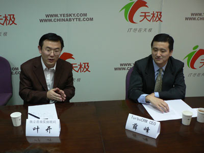 主持人:剖析行業(yè)發(fā)展趨勢,體察企業(yè)e化需求,各位網(wǎng)友下午好,感謝大家關(guān)注本期的e領(lǐng)袖對話。自2002年開始,CRM在中國取得了快速的發(fā)展,但在人們欣慰的同時還有一個現(xiàn)實讓CRM的概念可能人盡皆知,但CRM的理念卻遠沒有深入人心。另外,最近一頓時間,在領(lǐng)域內(nèi)舉足輕重人物的言行以及一些知名CRM企業(yè)的變數(shù),讓人們對CRM的未來有了各種各樣的猜測和顧慮。那么CRM到底會有一個什么樣的未來,CRM為會帶給中國的企業(yè)用戶一個什么樣的未來,今天我們對話請到的是在CRM領(lǐng)域相當(dāng)資深的兩位嘉賓,看看他們會給我們一個什么樣的答案。今天這個話題引起了網(wǎng)友濃厚的興趣,在進來之前很多網(wǎng)友已經(jīng)提出了問題,今天會把網(wǎng)友的問題結(jié)合我們話題一起進行,請大家隨時關(guān)注,首先介紹一下今天來到對話的兩位嘉賓。一位是TurboCRMCEO薛峰。這位是獨立咨詢實施顧問葉開老師。首先歡迎兩位到來,今天話題可能跟之前不同,之前會了我們話題,隨后結(jié)合我們網(wǎng)友問題來聊。但是今天網(wǎng)友的問題和今天的主題比較切合,所以就網(wǎng)友問題和我們話題結(jié)合起來進行,今天把首發(fā)交給網(wǎng)友,Turbo算是國內(nèi)最大的嗎?先請葉老師回答一下。