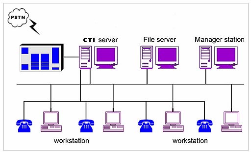 在實(shí)際工作中將CTI服務(wù)器、管理工作站、文件服務(wù)器、坐席工作站集中于一臺(tái)微機(jī)處理。