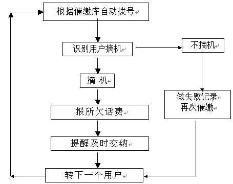 。。綜合語音通知系統(tǒng)可與10000話費查詢系統(tǒng)結(jié)合使用。當(dāng)用戶得知需要繳納話費時,可撥打10000查詢熱線,聽到問候語后輸入電話號碼,10000系統(tǒng)即可自動播放用戶查詢月份的話費發(fā)生情況。催費由指定的欠費數(shù)據(jù)文件(或欠費數(shù)據(jù)庫)中提取用戶電話號碼和欠費金額,自動順序向各欠費用戶撥號,撥通后自動播放催費通知并通報欠費金額數(shù)。系統(tǒng)自動統(tǒng)計通話結(jié)果,系統(tǒng)對未應(yīng)答用戶會自動重復(fù)多次撥叫。