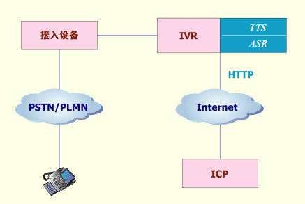使用VXML語言編寫流程腳本或網(wǎng)頁,該腳本或網(wǎng)頁的內(nèi)容與固網(wǎng)短信終端上的菜單相對應(yīng),普通用戶可通過語音方式瀏覽該菜單。當(dāng)用戶選擇信息點播后,VoiceIE系統(tǒng)模擬普通固網(wǎng)短信終端向ICP發(fā)送請求,并接收ICP發(fā)來的文字信息,然后通過TTS技術(shù)向用戶播放文字信息。當(dāng)然,固網(wǎng)短信終端也可通過菜單瀏覽方式使用這些采用VXML語言編寫的業(yè)務(wù),采用VXML語言編寫網(wǎng)頁的工作可由ICP來完成。