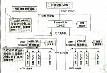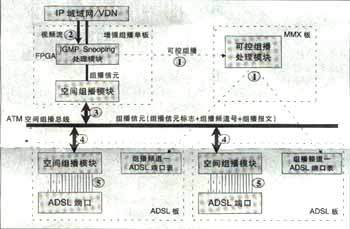 可實(shí)現(xiàn)高效的兩級(jí)組播。基于空間總線上的組播信元技術(shù)實(shí)現(xiàn),與組播用戶數(shù)無(wú)關(guān),同一節(jié)目即使所有用戶加入該頻道,僅需復(fù)制一份,不用逐個(gè)用戶復(fù)制到每個(gè)用戶端口,極大節(jié)省了背板帶寬,減輕IP上行負(fù)擔(dān)。可實(shí)現(xiàn)高性能硬件組播轉(zhuǎn)發(fā)。IP上行板采用超大規(guī)模FPGA硬件邏輯處理組播報(bào)文,ADSL板采用空間組播處理硬件芯片自動(dòng)完成向每個(gè)ADSL端口(用戶)的組播復(fù)制,每ADSL端口組播帶寬6M。