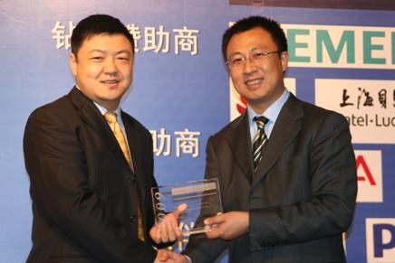圖: F&S全球主席David Frigstad親自授予華為軟件“2009數(shù)字城市解決方案創(chuàng)新獎”。