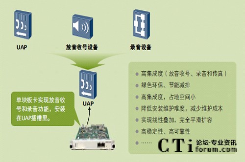 隨著全球氣候的變化,低碳經(jīng)濟(jì)已經(jīng)成為關(guān)注焦點(diǎn)。一體化接入平臺UAP2100內(nèi)置了寬窄帶語音交換和排隊(duì)功能,在僅2U的高度之內(nèi)實(shí)現(xiàn)了寬窄帶中繼接入和錄音、放音等媒體資源處理能力,無需外置媒體服務(wù)器和中繼網(wǎng)關(guān),低能耗元器件的使用和高集成度設(shè)計,有效降低了空間占用和能源消耗,使您在不經(jīng)意間就實(shí)現(xiàn)了綠色聯(lián)絡(luò)中心平臺,降低您可觀的運(yùn)行成本。
