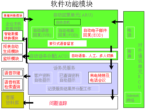 - 該模塊提供信息對(duì)照及調(diào)整功能,自動(dòng)語(yǔ)音回復(fù)(IVR)及話(huà)務(wù)員(Agent)需求資料;在與主機(jī)連接的數(shù)據(jù)上傳及下傳均通過(guò)該模塊完成,同時(shí)作資料對(duì)照(同步最新的數(shù)據(jù))并加快數(shù)據(jù)的傳遞。