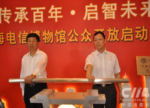 圖:中國電信上海公司黨委副書記陳鴻生(左)與上海市通信管理局正巡視員李振坤共同啟動上海電信博物館公眾開放