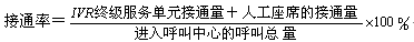 - 定義:對于具有IVR和ACD的呼入式呼叫中心,接通率是指IVR終級服務(wù)單元的接通量與人工座席的接通量之和與進入呼叫中心的呼叫總量之比。