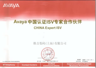 維音數(shù)碼被授權(quán)為AVAYA中國認證ISV專家合作伙伴