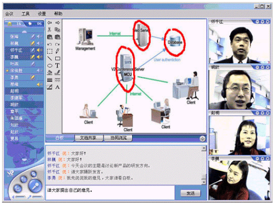 V2 Conference可以利用普通的PC機(jī)、標(biāo)準(zhǔn)的視頻攝像頭、耳機(jī)和麥克風(fēng),通過Internet或者是局域網(wǎng)進(jìn)行會議。與傳統(tǒng)的需要專用的服務(wù)器和硬件支持的視頻會議相比,企業(yè)無需投入高昂的成本,就可以實現(xiàn)高質(zhì)量的遠(yuǎn)程會議。同時,V2 Conference還提供了遠(yuǎn)程會議管理的功能。