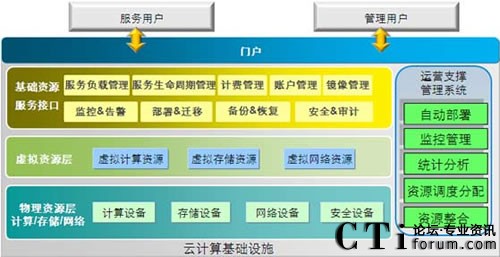 軟件服務(wù)層主要是對(duì)用戶提供具體的服務(wù),比如SNS社區(qū)、移動(dòng)U盤、企業(yè)移動(dòng)IM等。同時(shí),中興云計(jì)算架構(gòu)還提供多層次安全解決方案和管理方案。