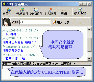 5、另外,這夢(mèng)幻尋呼DICO還將具有"短消息"和"自帶聊天室"功能,不過(guò)目前處于開(kāi)發(fā)中。有了這夢(mèng)幻尋呼,以后聊天的日子就瞧好吧你!