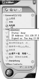 Trillian的最大好處就是整合了上述除QQ外的五大即時通訊產(chǎn)品。它不僅包括了好友上網(wǎng)提示、同一程序多重連接、表情圖示、對話記錄和離開/隱身等功能,還有統(tǒng)一的聯(lián)絡(luò)清單,讓用戶可以在一個界面內(nèi),同時看到不同通訊軟件的朋友的線上狀態(tài)。