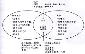 NGN是融合網(wǎng)絡(luò)。數(shù)據(jù)網(wǎng)與電信網(wǎng)曾是兩個(gè)有著不同特性的網(wǎng)絡(luò),它們的融合將帶來(lái)一系列新的業(yè)務(wù),并對(duì)網(wǎng)絡(luò)平臺(tái)提出新的要求(見圖1)。因此,NGN的網(wǎng)絡(luò)功能結(jié)構(gòu)如何設(shè)定是我們要關(guān)注的重點(diǎn)。