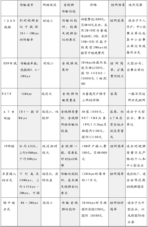 對于普通的個人用戶,如果想嘗試一下視頻會議的感受可以試一試PSTN接入。PSTN公共電話網(wǎng)是目前使用最廣泛的網(wǎng)絡(luò)系統(tǒng),它的優(yōu)點(diǎn)是覆蓋區(qū)域廣、易于使用、價格較低,聯(lián)網(wǎng)容易。但網(wǎng)絡(luò)速度僅能提供到56kbps,線路質(zhì)量較差,傳輸速率較低。對于視頻會議的聲音圖像傳輸遠(yuǎn)遠(yuǎn)不夠,基于軟件的視頻會議系統(tǒng)能達(dá)到4f/s的圖像傳輸速率,其最大的缺點(diǎn)是圖像質(zhì)量太差,會大大影響會議的質(zhì)量,一般用得很少。