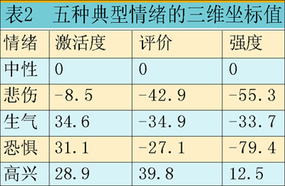當(dāng)然該三維坐標并不能解決所有的情感特征,例如擔(dān)心、熱愛等情感則不能只通過三維空間的描述來說明,同時由于情感受不同的人感知,反映在語音的聲學(xué)特征上亦會具有不同的表現(xiàn)形式,因此還需要在情感與認知模型上進行更深入的研究。