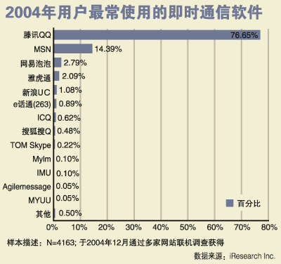 巨大的商機(jī)和財(cái)富也催生出了眾多的跟風(fēng)者,網(wǎng)易泡泡、新浪聊聊吧、搜狐搜Q等IM軟件層出不窮,與其說他們是看中即時(shí)通信市場(chǎng)的強(qiáng)大潛力,更不如說,他們都想要通過IM軟件的形式來爭(zhēng)取短信的流量!拔覀兿Mㄟ^這種形勢(shì),進(jìn)一步提高新浪在短信方面的競(jìng)爭(zhēng)力,而且最近的統(tǒng)計(jì)數(shù)據(jù)已經(jīng)表明,隨著注冊(cè)用戶忠誠度的提高和傳播效果的擴(kuò)散,我們的市場(chǎng)占有率在穩(wěn)固提高”,新浪聊聊吧項(xiàng)目負(fù)責(zé)人如是說。
