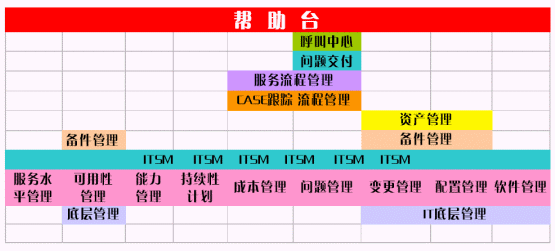 底層硬件管理等。而在ITIL理論之上,有ITSM就是IT服務管理,ITSM的管理體系實際上是和ITIL完全相同的,F(xiàn)在流行的一些管理概念,如CASE管理,工單管理,資產(chǎn)管理,備件管理,設備管理,服務流程管理,問題交付,呼叫中心等,都是在ITIL框架之下的某一個方面。