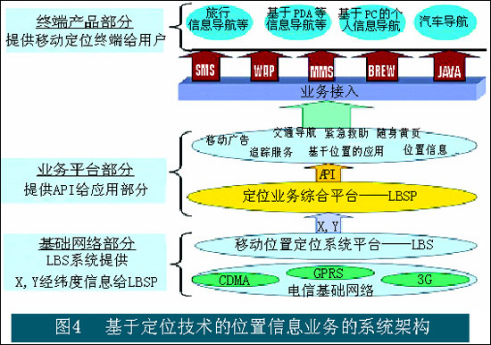Service)兩大部分;業(yè)務平臺層面包括定位業(yè)務綜合平臺(Location-based Service Platform)和基于位置信息的應用平臺等部分;業(yè)務接入平臺作為統(tǒng)一的接入環(huán)境支持目前存在的業(yè)務接入手段;終端層面則包括了移動終端提供商,以及具體的業(yè)務使用者。