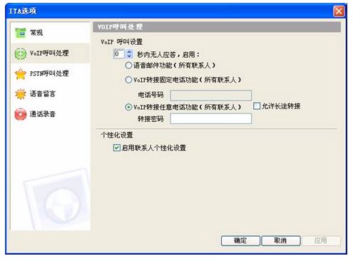 現(xiàn)在你的安裝工作已經(jīng)完成了,如果有 Skype客戶撥打ITA-Demo就會(huì)聽到“歡迎致電某某公司,產(chǎn)品咨詢請撥15,產(chǎn)品訂購請撥16,人工服務(wù)請撥0”的語音提示(在交換機(jī)上設(shè)定的語音)。