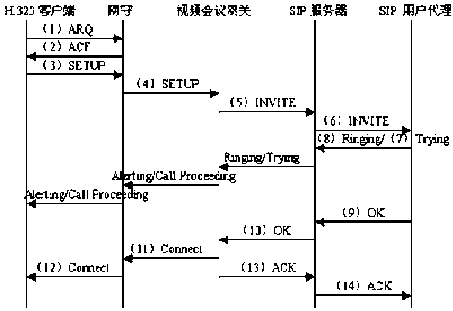 為了更好的說(shuō)明視頻會(huì)議網(wǎng)關(guān)在跨協(xié)議會(huì)議系統(tǒng)中的作用和工作流程,我們以一個(gè)由H.323客戶終端發(fā)起的會(huì)議請(qǐng)求為例來(lái)描述視頻會(huì)議網(wǎng)關(guān)對(duì)兩種協(xié)議信令消息的處理過(guò)程(如圖2所示)。