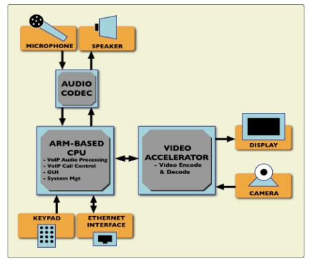 自從第一代的IP可視電話推出以來,通用應(yīng)用處理器的處理能力已經(jīng)提高到能將所有通常用DSP實現(xiàn)的語音處理器任務(wù)由應(yīng)用處理器實現(xiàn)。特別對于Wi-Fi可視電話市場來說,這是一個非常重要的進步,因為無線連接的設(shè)備基本的需求是降低功耗,最大化電池壽命。