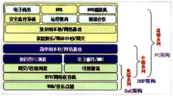 當(dāng)前國內(nèi)IPTV業(yè)務(wù)試點中采用的機頂盒,包括華為、中興、UT等主流廠商都主要采用了基于DSP架構(gòu)的技術(shù)解決方案,除能滿足點播、直播等標(biāo)清業(yè)務(wù)需求外,還可通過軟件升級,以支持信息瀏覽、簡單的本地/網(wǎng)絡(luò)游戲等增值業(yè)務(wù),基本上可滿足上述業(yè)務(wù)一定規(guī)模用戶商用要求。