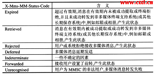 在網(wǎng)間業(yè)務(wù)互通中,遞送報(bào)告的狀態(tài)非常重要,因?yàn)椴煌\(yùn)營(yíng)商間的結(jié)算要依靠遞送報(bào)告的狀態(tài)。在3GPP的協(xié)議規(guī)范中,沒(méi)有對(duì)遞送報(bào)告的狀態(tài)含義做詳細(xì)的規(guī)定:根據(jù)各個(gè)廠家開(kāi)發(fā)設(shè)備的情況,可擴(kuò)展相應(yīng)的規(guī)定,具體的狀態(tài)含義參見(jiàn)表1。