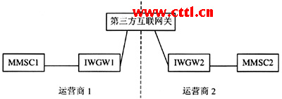 圖1 點(diǎn)對(duì)點(diǎn)多媒體消息業(yè)務(wù)網(wǎng)間互聯(lián)網(wǎng)絡(luò)結(jié)構(gòu)示意圖
