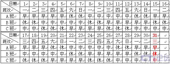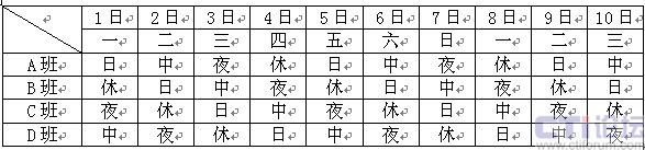 圖2 24小時四班三運轉(zhuǎn)排班表1